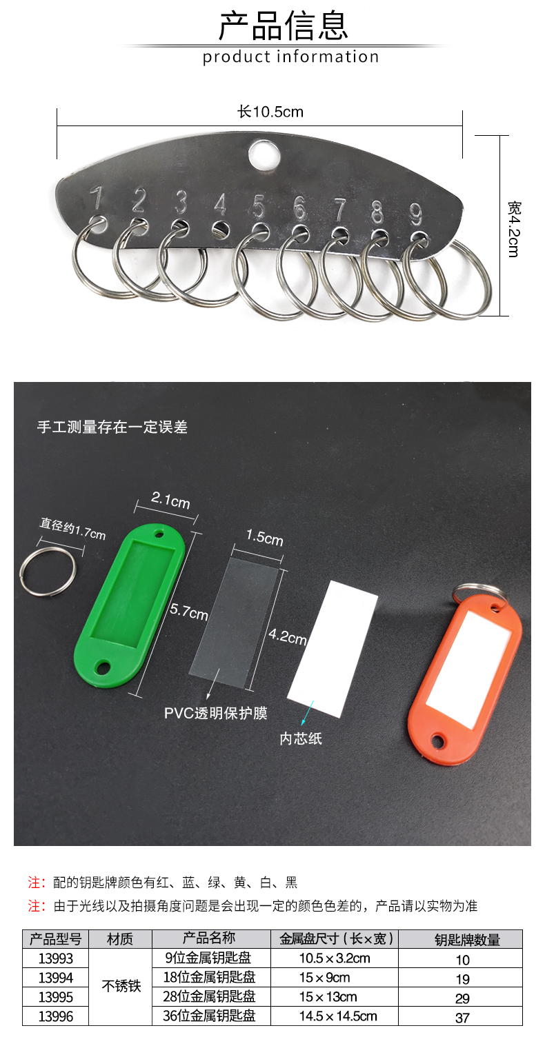 安赛瑞 18位金属钥匙盘(含钥匙扣)宿舍钥匙管理盘 不锈钢钥匙圈 钥匙管理板 钥匙收纳盘 13994