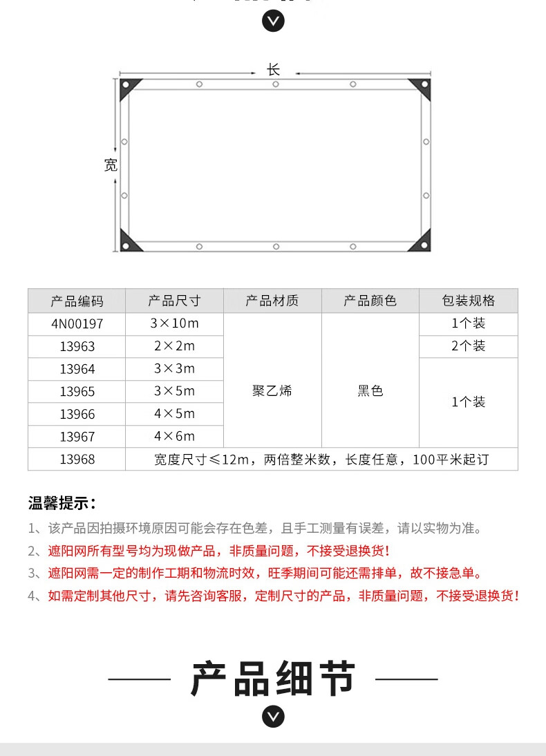 安赛瑞 遮阳防晒网 黑色遮阳网 包边打孔防晒网 遮阴网 遮光网 园林工地遮阳网(2个装)2×2m 13963