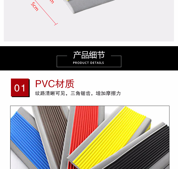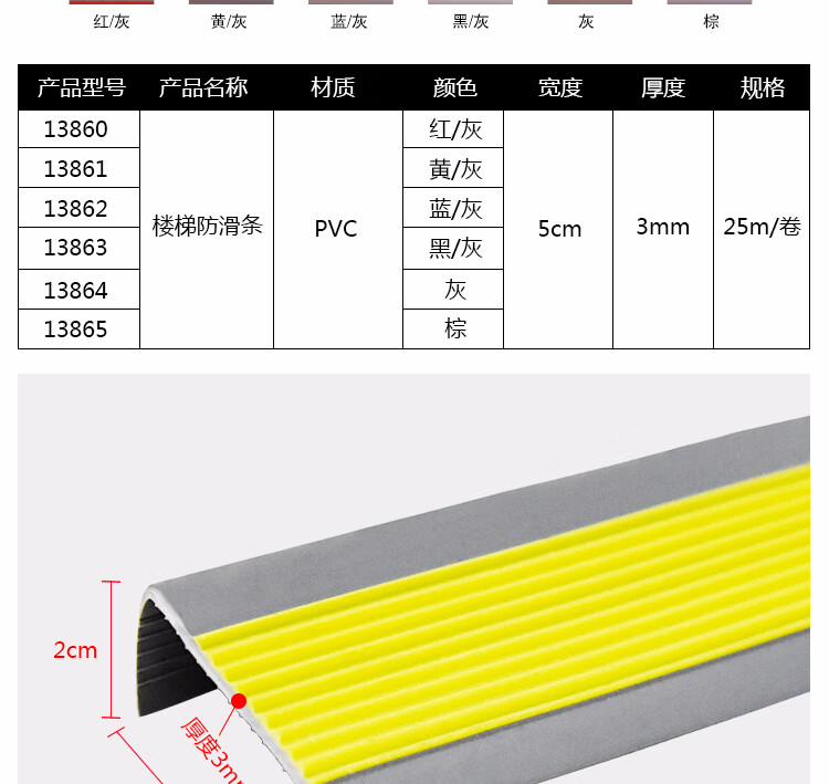 4 宽度为5cm,厚度为3mm,规格为25m/卷,尺寸设计合理,适用于各种楼梯环境。