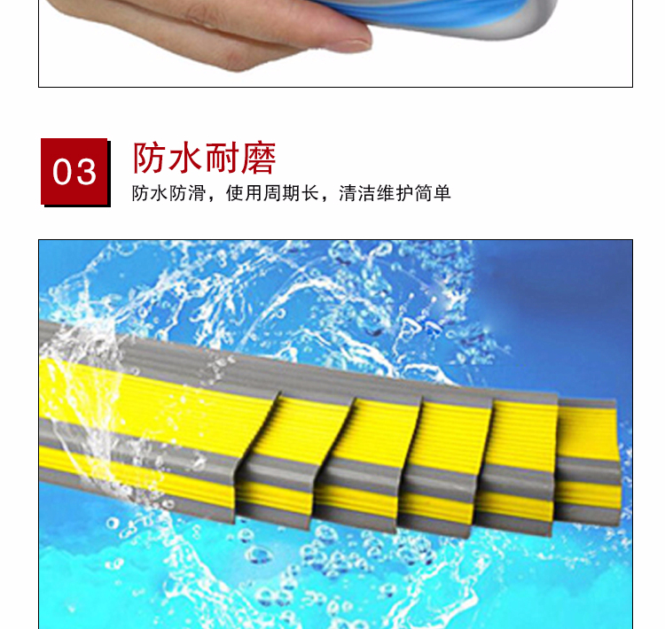 3 具备防水和耐磨特性,即使在潮湿环境中也能保持防滑效果,且易于清洁维护。