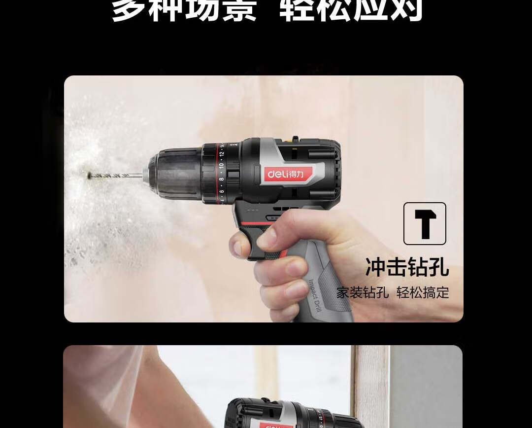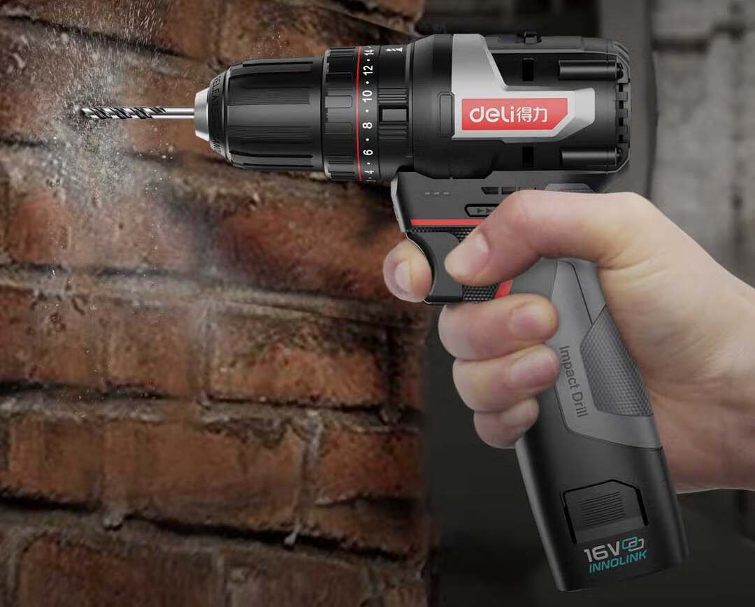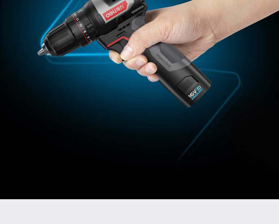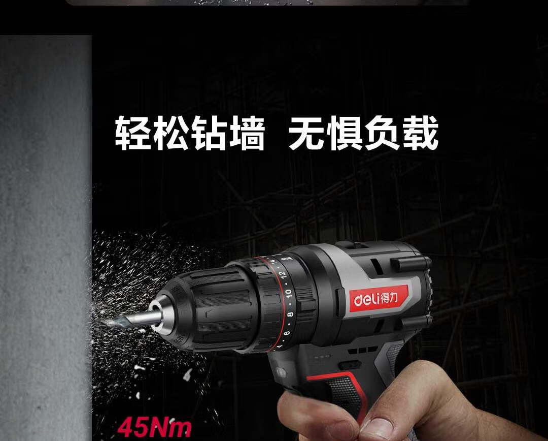 得力/deli 手电钻16v无刷冲击锂电充电式电动螺丝刀电起子45Nm电动工具 DE-CZ16-1D2