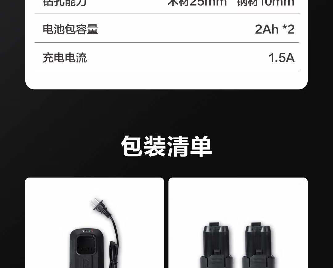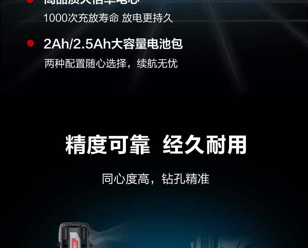6 高品质电池:配备2Ah/2.5Ah大容量电池包,支持1000次充放电循环,续航时间长,工作不间断。