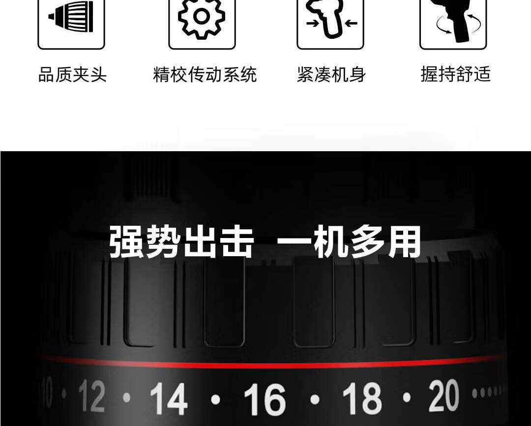 4 多档调节:具备18+1档多种扭力调节,满足不同工况作业需求,无论是木材、金属还是瓷砖,都能轻松应对。