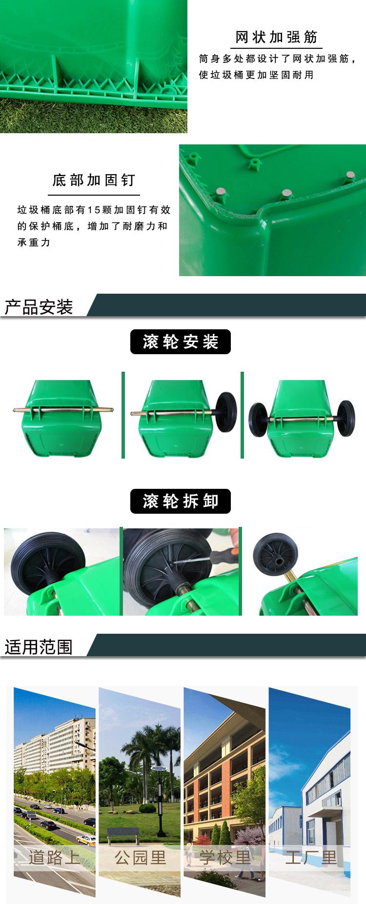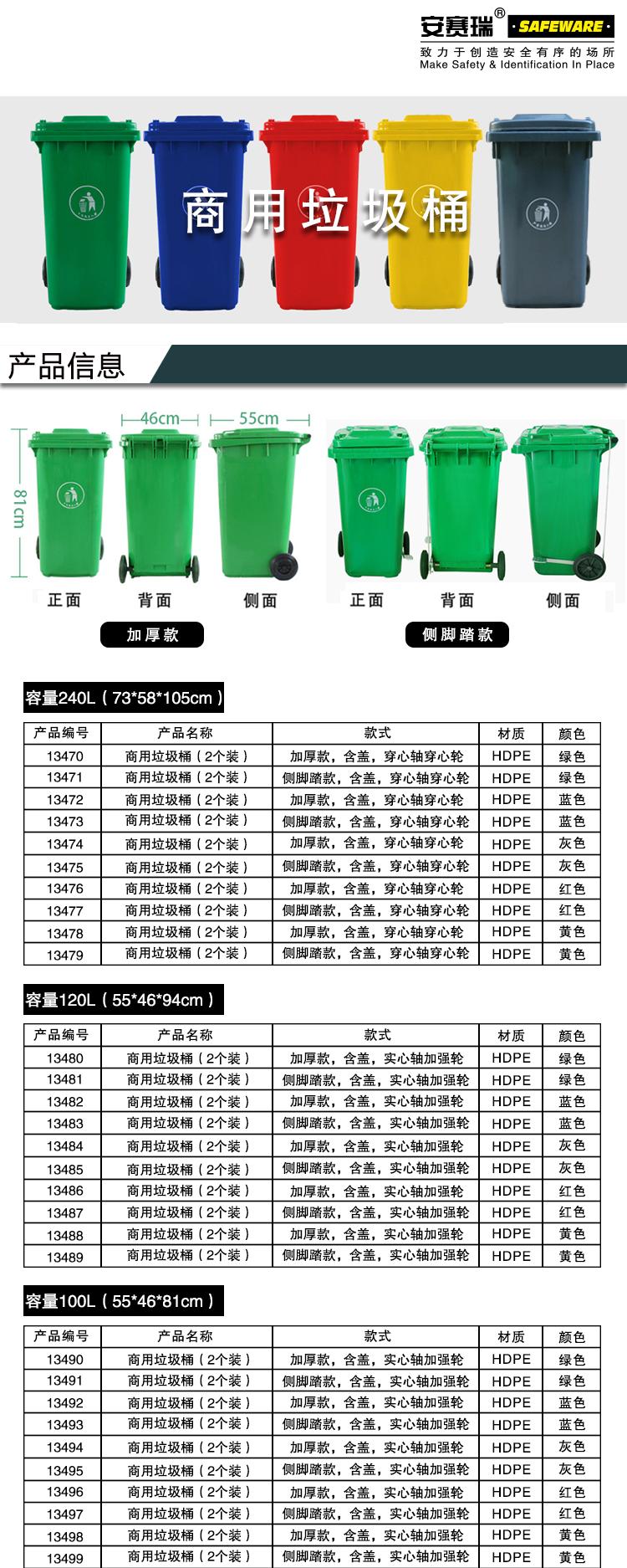 安赛瑞 13490 商用垃圾桶(100L)2个装 绿色 55×46×81cm 环卫翻盖垃圾桶 小区物业垃圾桶