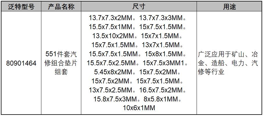 Forant(泛特) 80901464 551件套汽修组合垫片组套广泛应用于多个工业领域: