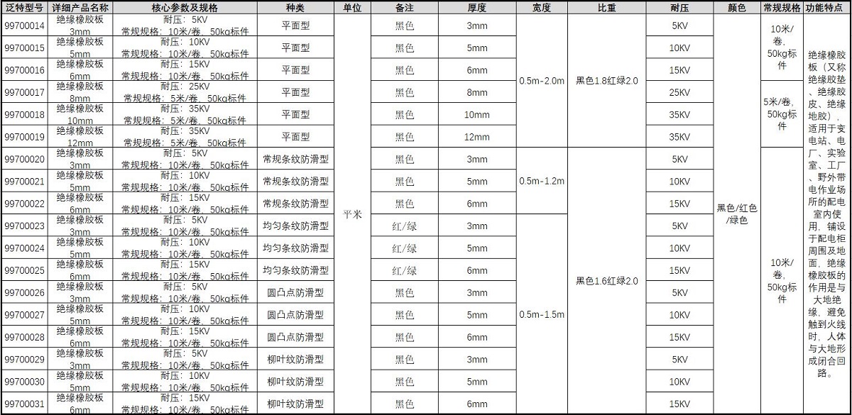 电力行业:适用于变电站、发电厂等场所,作为电气设备的绝缘垫层,防止电击事故。
