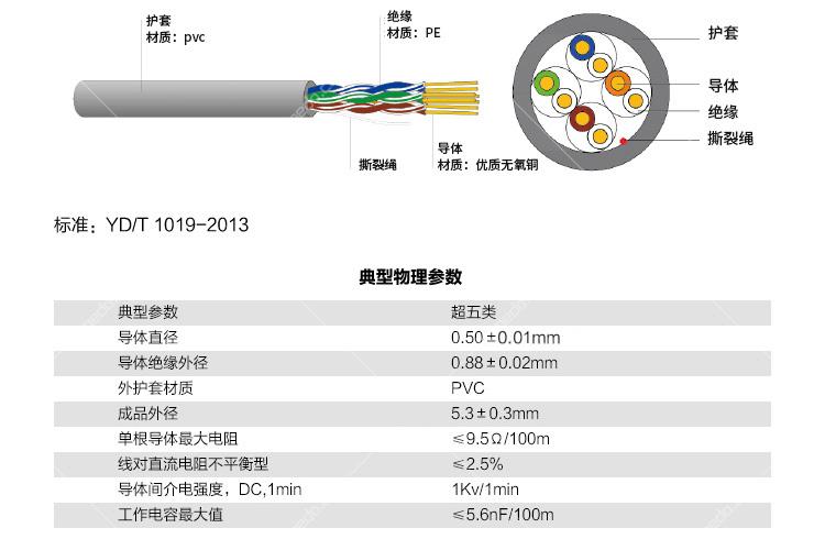 6 符合YD/T 1019-2013标准,典型物理参数严格控制,确保产品质量。