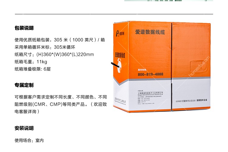 爱谱华顿/AIPU 超五类4对UTP电缆 AP-5E-01 灰色 305米/箱 (新)