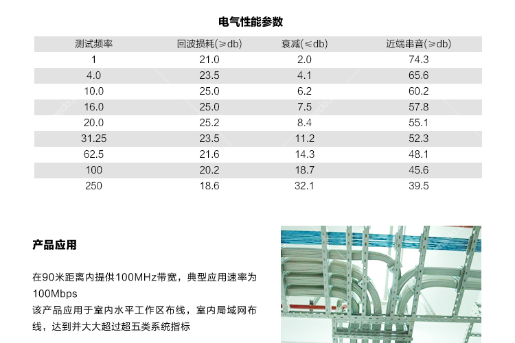 5 电气性能优越,近端串音值高,衰减值低,回波损耗表现优异,满足高速数据传输需求。