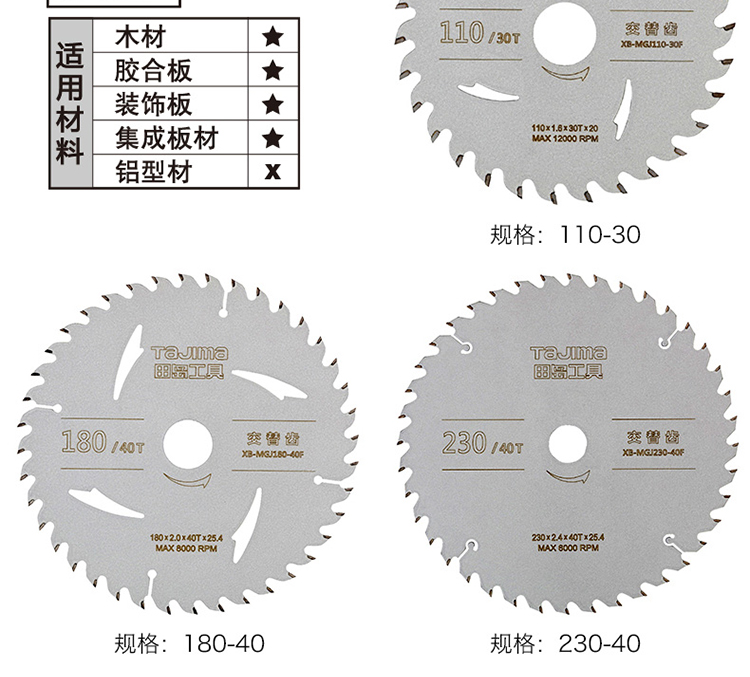 田岛(TAJIMA) 1605-2724 木工圆锯片180X2.0X40TX25.4