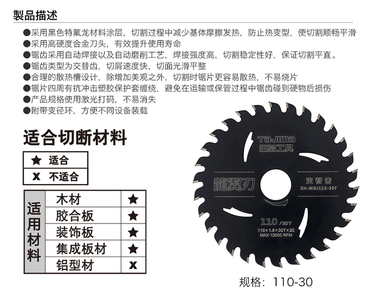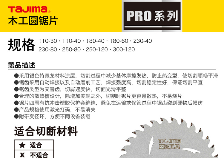 田岛(TAJIMA) 1605-2729 木工圆锯片250X2.6X80TX25.4