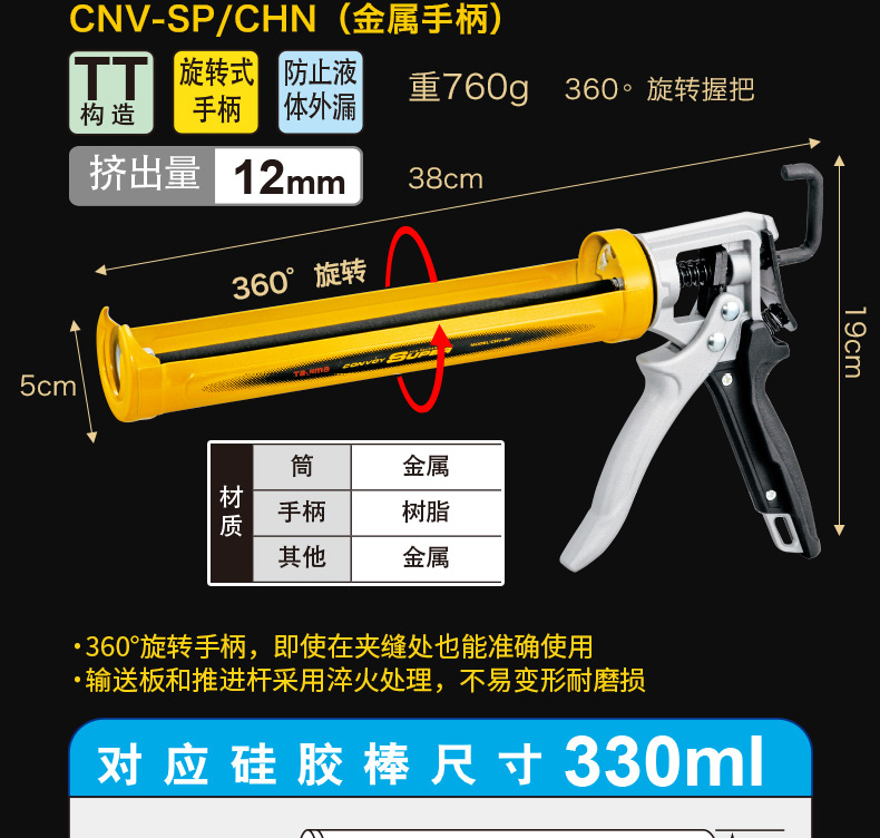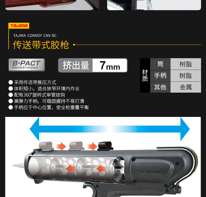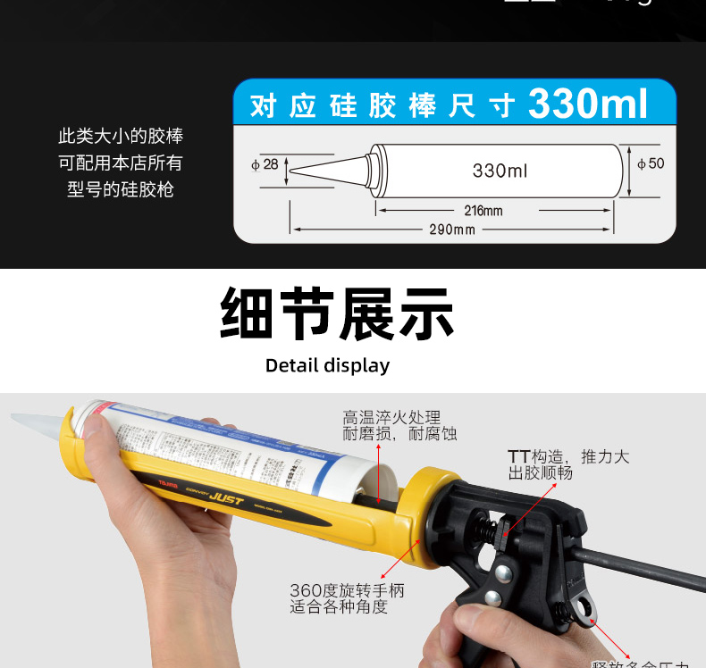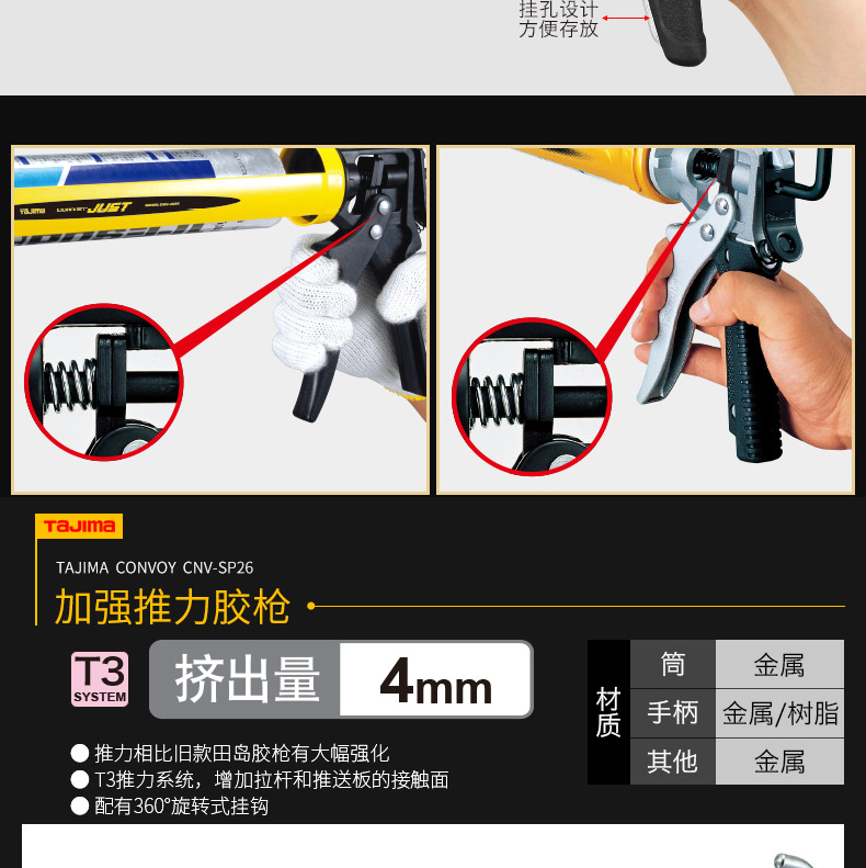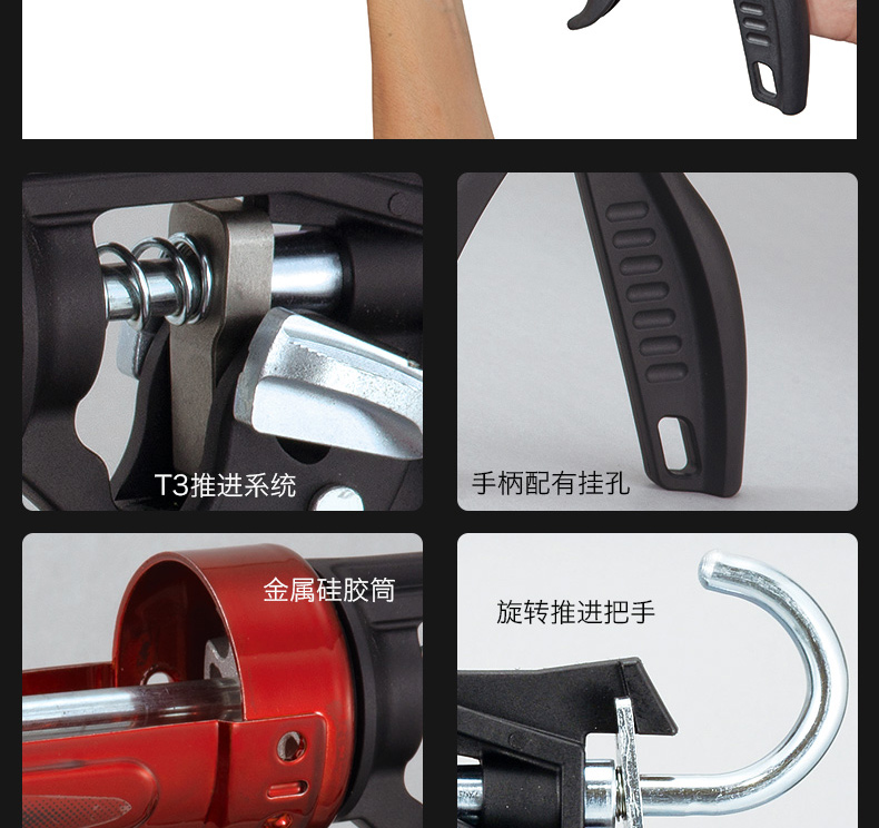 **T3推进系统**:相比旧款,推力大幅强化,增加拉杆和推送板的接触面,确保稳定高效的胶水挤出。