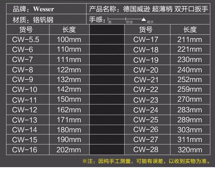 为了确保Wesser CW-32 两用扳手的安全使用和使用寿命,请注意以下事项: