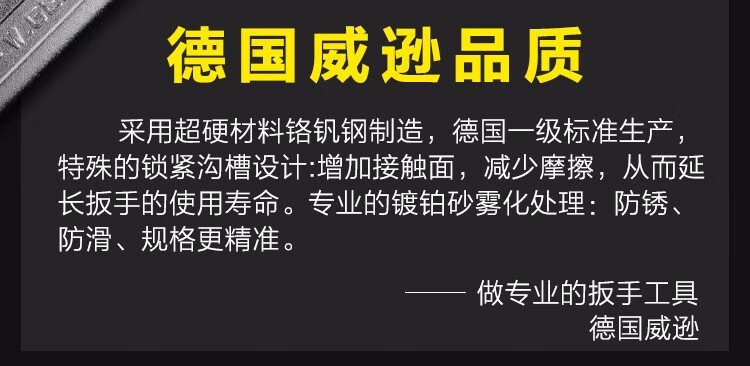 1 精选铬钒钢材质,硬度高、韧性好,确保扳手在高强度使用下不易变形和断裂。