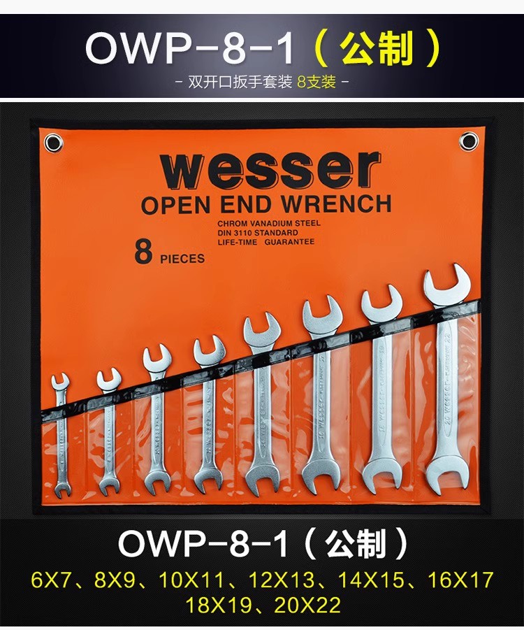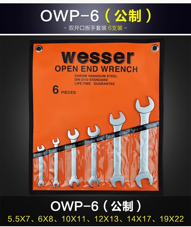 Wesser OWP-6 双开口扳手6件装5.5-22mm