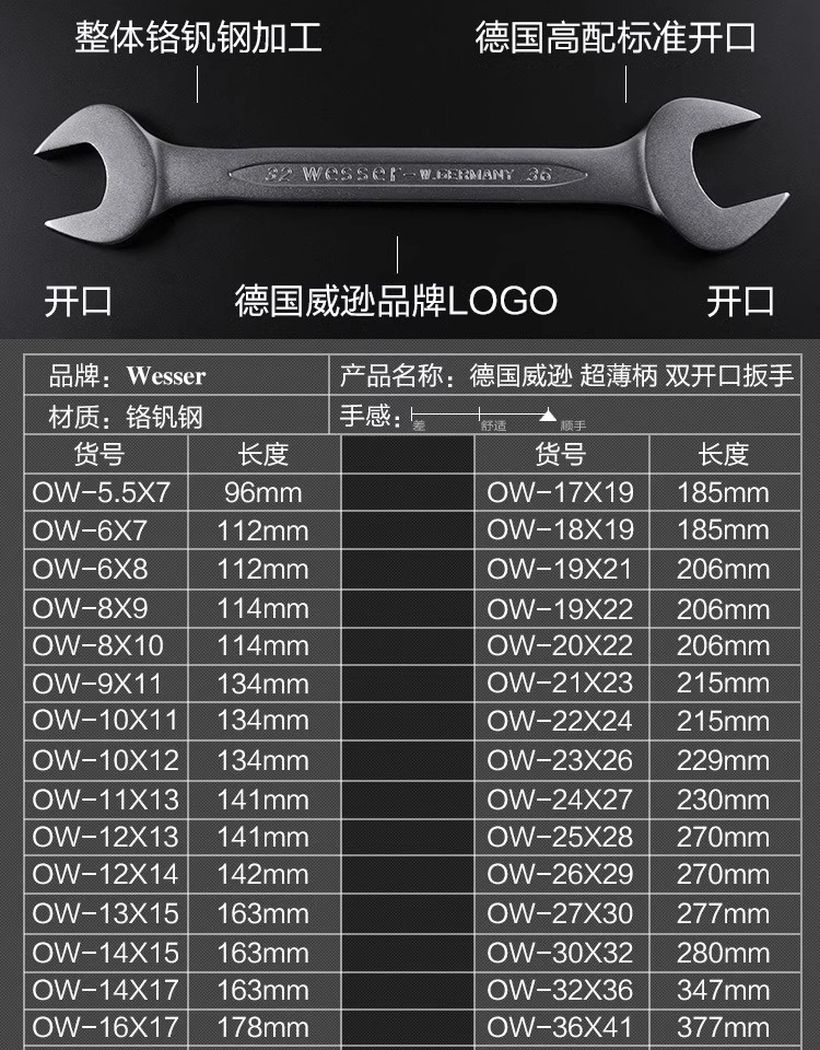 Wesser OWP-8-2 双开口扳手8件装6-24mm