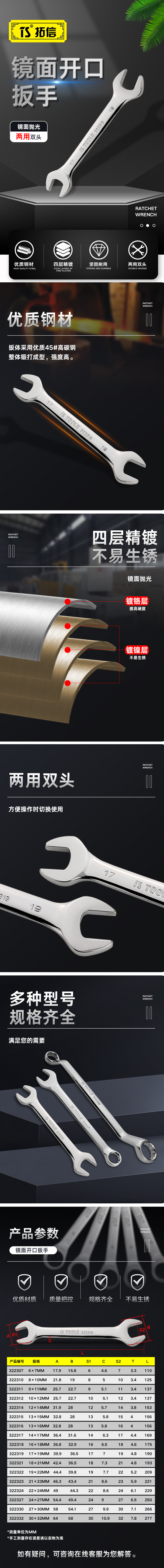 拓信镜面双开扳手(10把装)322311具有以下特点: