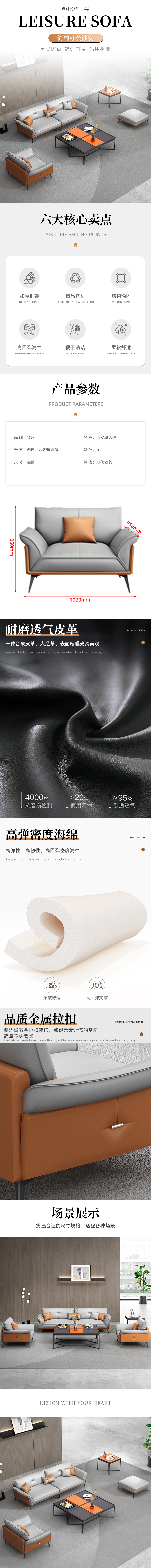 该款臻远ZYJJ-80196办公沙发采用西皮(人造皮革)材质,表面经过特殊处理,具有耐磨、耐刮、易清洁的特点,适合高频率使用的办公环境。沙发内部填充高密度海绵,具备良好的回弹性与支撑力,长时间坐卧不易塌陷,提供舒适的坐感体验。框架结构采用加厚金属与实木结合设计,确保整体稳固耐用,承重能力强,使用寿命长。沙发尺寸为1020×950×850mm,属于单人位规格,适合小型接待区或独立办公区域使用。侧面配备金属拉扣装饰,兼具美观与实用性,提升整体设计感。产品风格定位现代简约,线条流畅,色调沉稳,适用于多种商务空间布局。此外,沙发支持可拆洗设计,方便日常维护与清洁,保持长久如新。