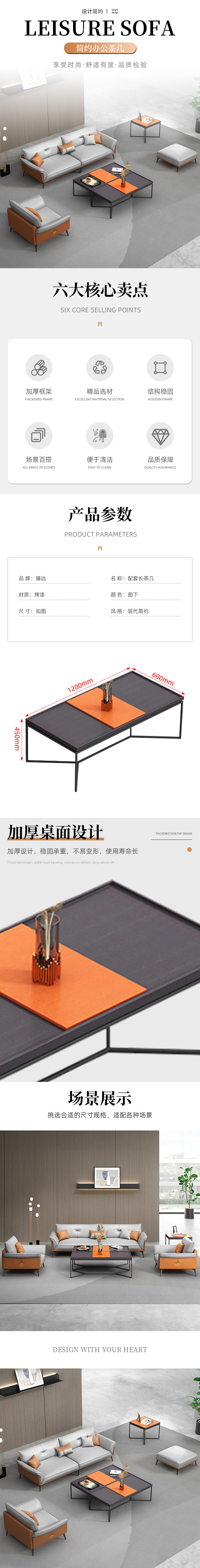 本款茶几适用于各类现代化办公环境中的休闲与会客区域,如企业接待大厅、会议室旁的等候区、开放式办公室的休息角落、高管办公室的会客区以及共享办公空间的社交区域。其简约大气的设计风格能够融入极简主义、工业风或现代轻奢等多种装修风格,提升整体空间质感。搭配同系列沙发使用时,可形成完整的会客家具组合,满足商务洽谈、客户接待、员工休憩等多种需求。同时,也可用于小型展厅、设计工作室、咖啡厅等需要兼具功能性和美观性的公共空间,作为中心家具点缀布局,增强空间互动性与舒适度。其稳定的结构和耐久材质也适合长时间高强度使用,是商用办公家具的理想选择。