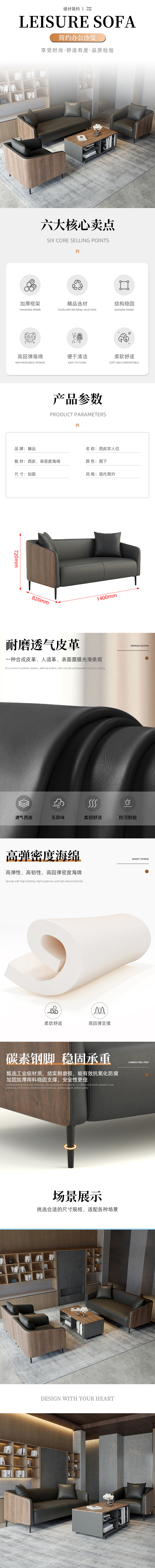 本产品适用于办公室接待区、会议室休息角、商务洽谈室、企业前台等候区等办公场所,也可用于酒店大堂、会所休闲区、咖啡厅等商业空间。其现代简约的设计风格能够轻松融入各种装修风格中,营造专业而舒适的氛围。双人位的尺寸设计特别适合两人对坐交流,便于沟通与协作。同时,由于其坚固耐用的结构和易清洁的表面材质,非常适合高频率使用的公共区域。无论是日常员工休息还是客户接待,都能提供良好的舒适度与品质感。
