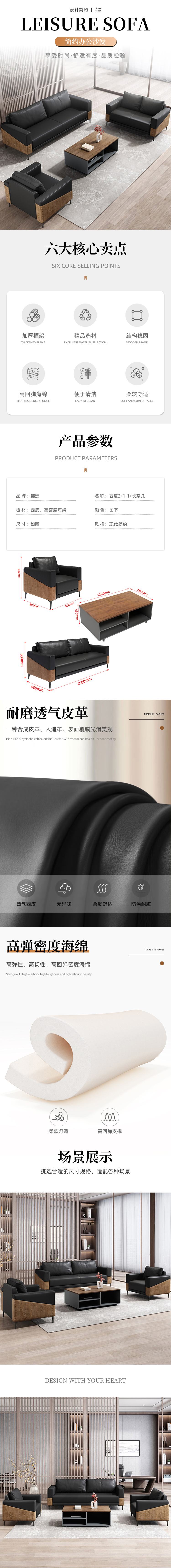 臻远ZYJJ-80229 简约办公沙发接待沙发休闲沙发组合 西皮3+1+1+长茶几