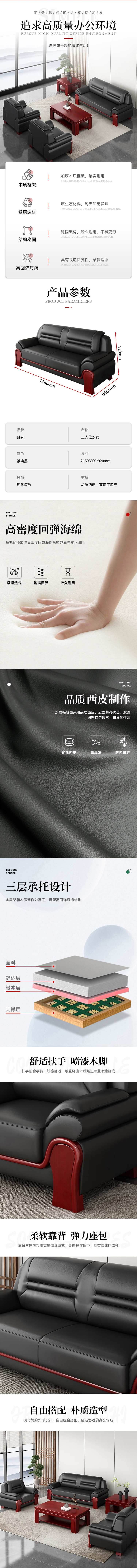 此外,沙发支持自由搭配组合,可与同系列茶几、单人椅等配套使用,打造统一协调的办公环境。
