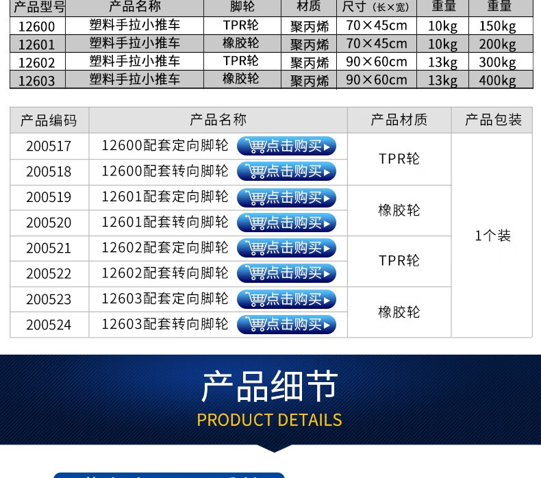 2 **承重能力强**:工程橡胶脚轮和TPR轮设计,最大承重可达300kg,确保在重载情况下稳定运行。