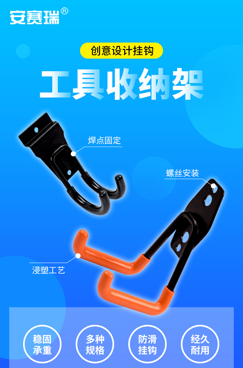 安赛瑞 收纳挂钩 汽车美容车库五金工具展示挂架 仓库置物架 小圆 黑色 200729