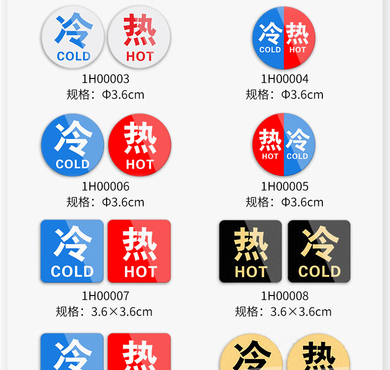 安赛瑞 亚克力冷热贴 冷热水标识牌墙贴 酒店水龙头冷热水开关贴 冷热 1H00004