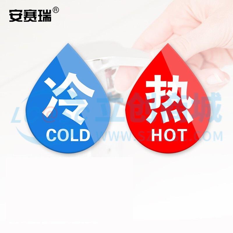 安赛瑞 亚克力冷热贴 冷热水标识牌墙贴 酒店水龙头冷热水滴形1对装 1H00014