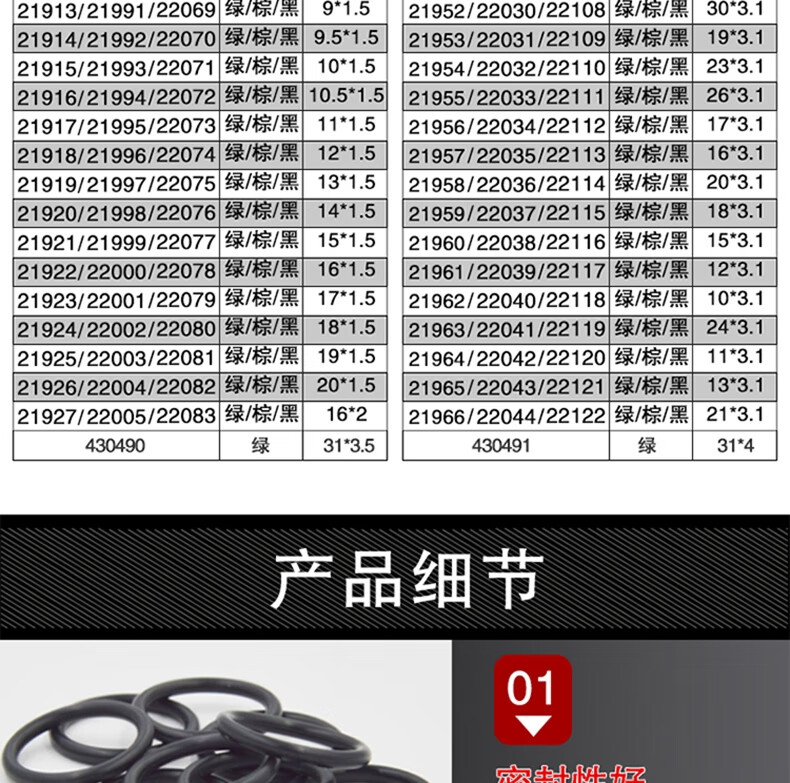 材质为氟橡胶(FKM),具备优异的耐高温性能,工作温度范围-15℃~+230℃,静密封或瞬时密封时可耐250℃