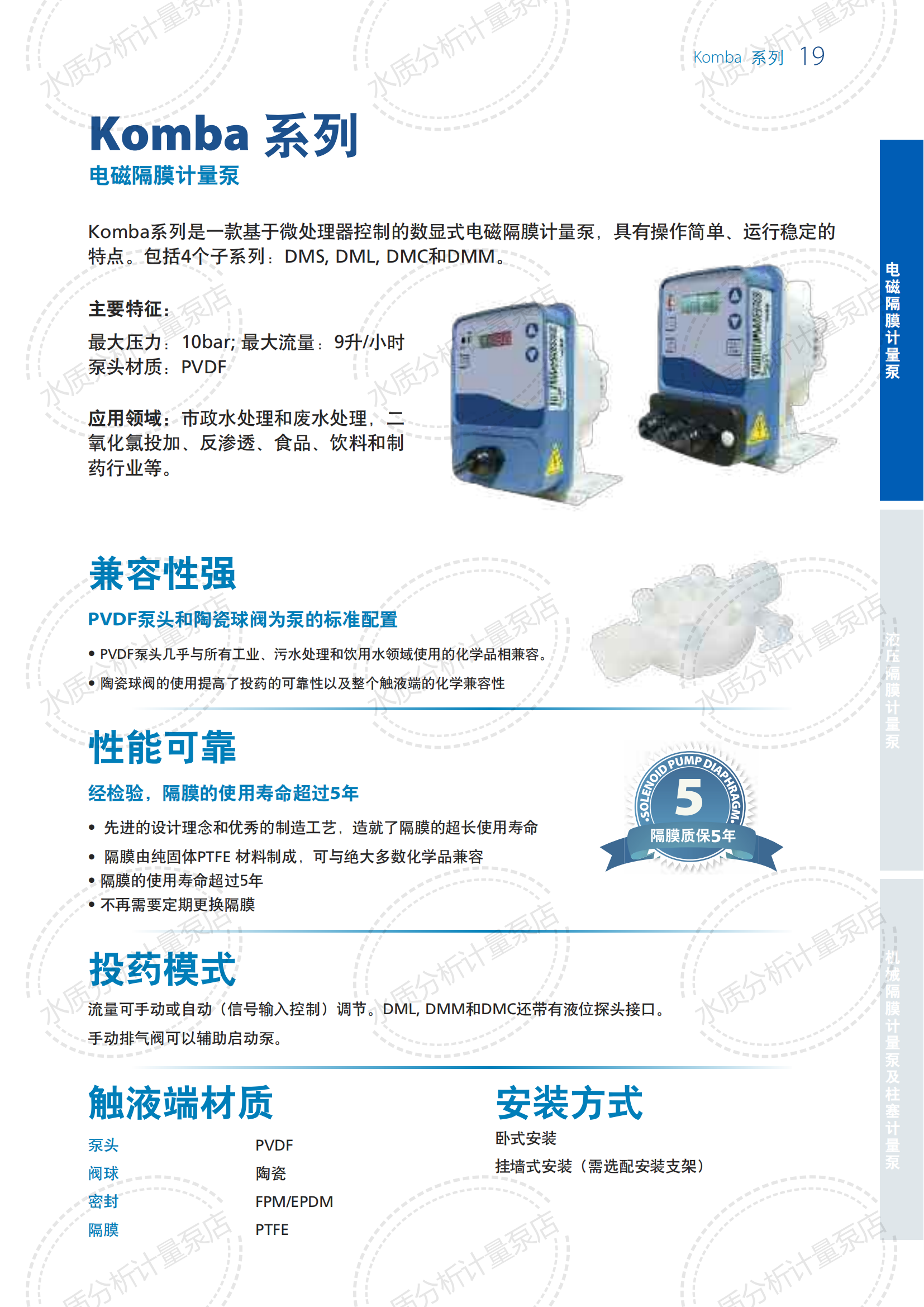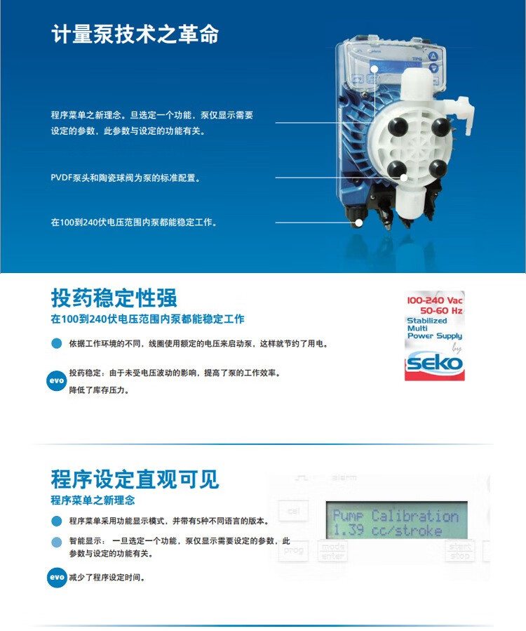 SEKO赛高计量泵DMS200电磁隔膜加药泵具有以下特点: