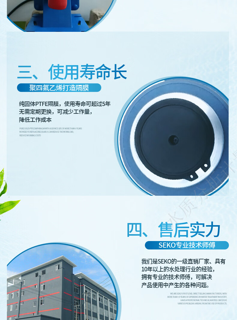 6 **制造工艺**:采用先进的制造工艺,确保产品的高精度和长寿命,隔膜使用寿命超过5年,无需定期更换。