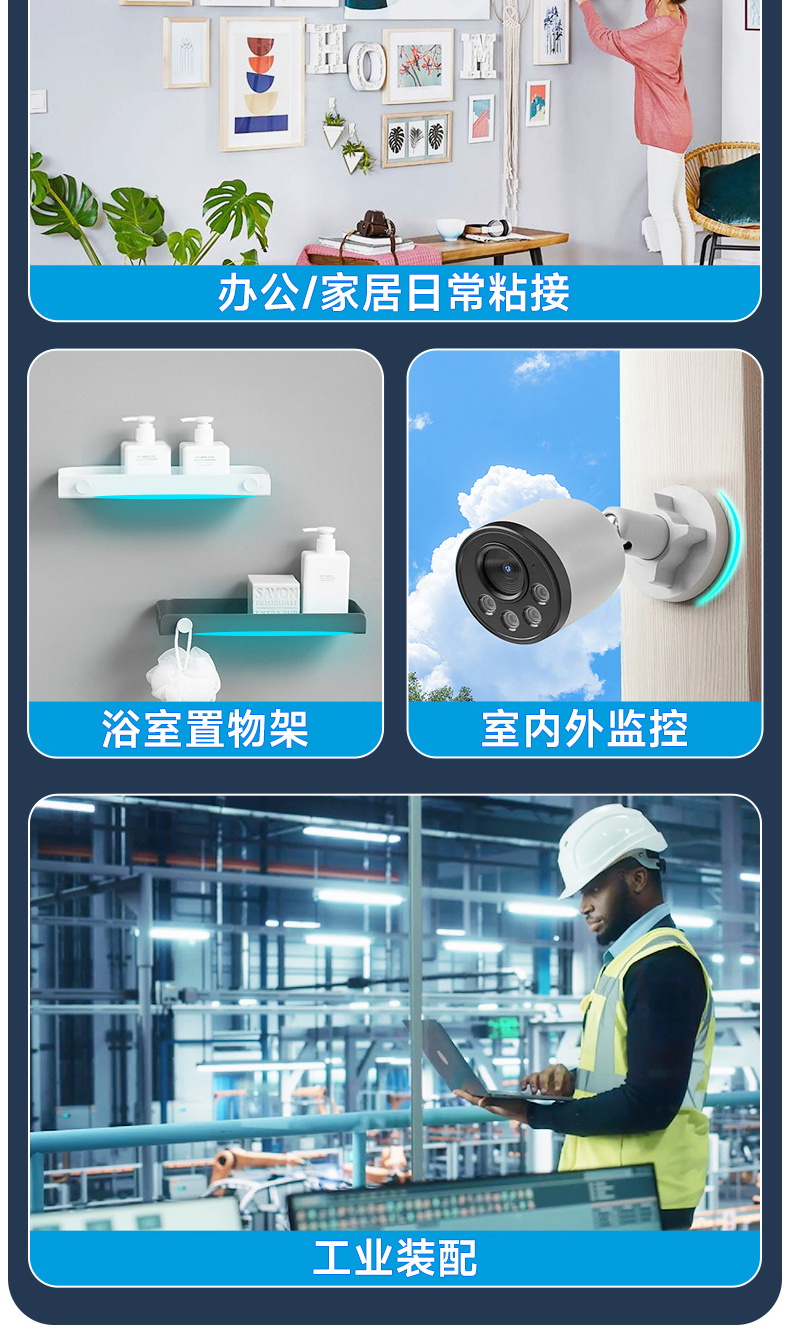 防水耐潮:有效贴合不规则表面,制造密封环境,防止水汽侵蚀,确保长期使用不脱胶。