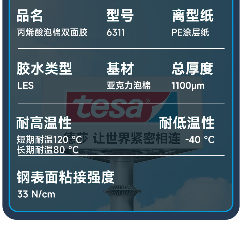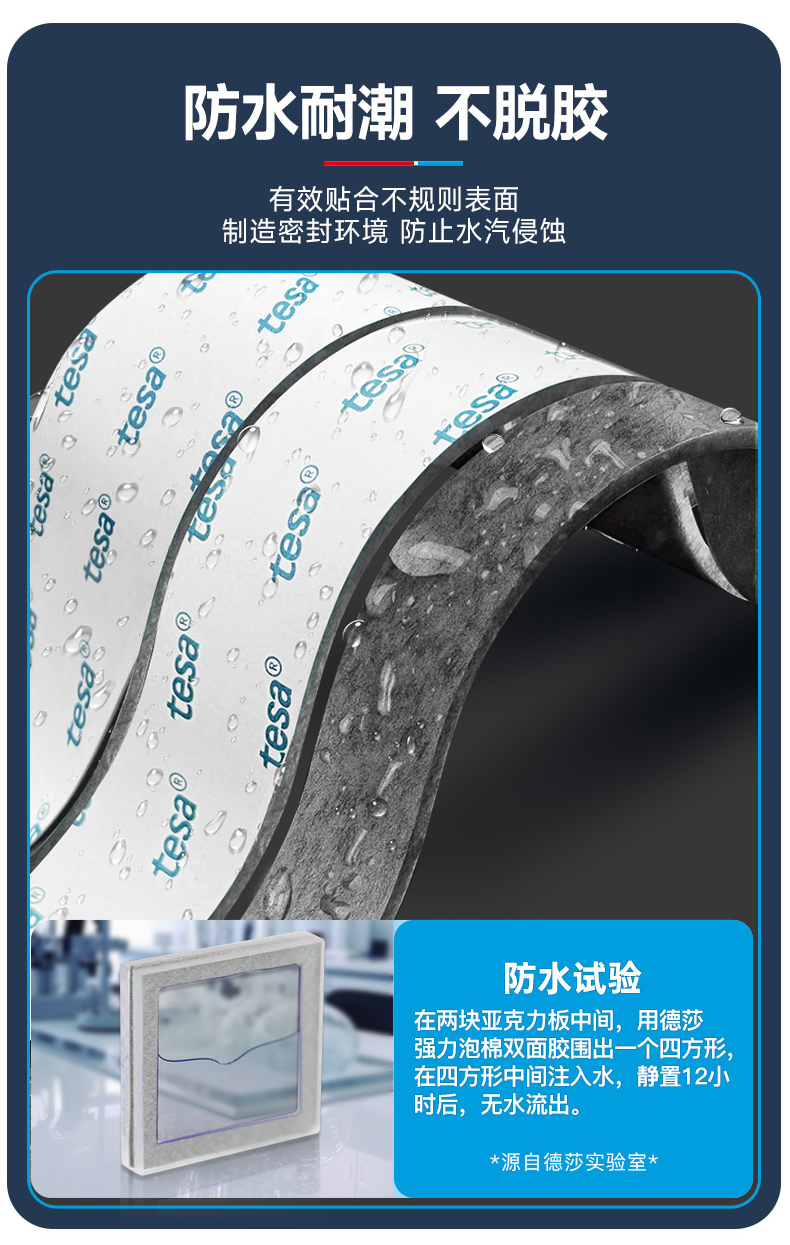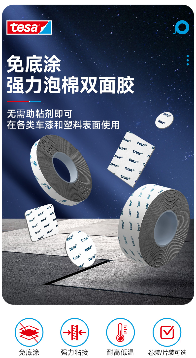强力粘接性能:采用tesa® LSE胶粘剂,提供卓越的粘接力,适用于永久粘接应用,确保持久牢固。