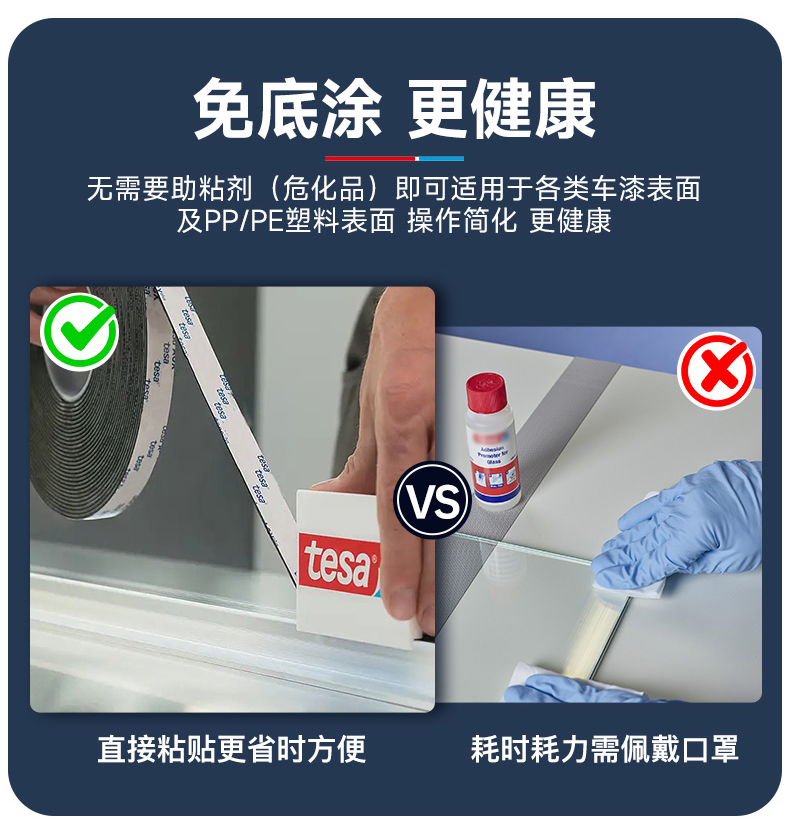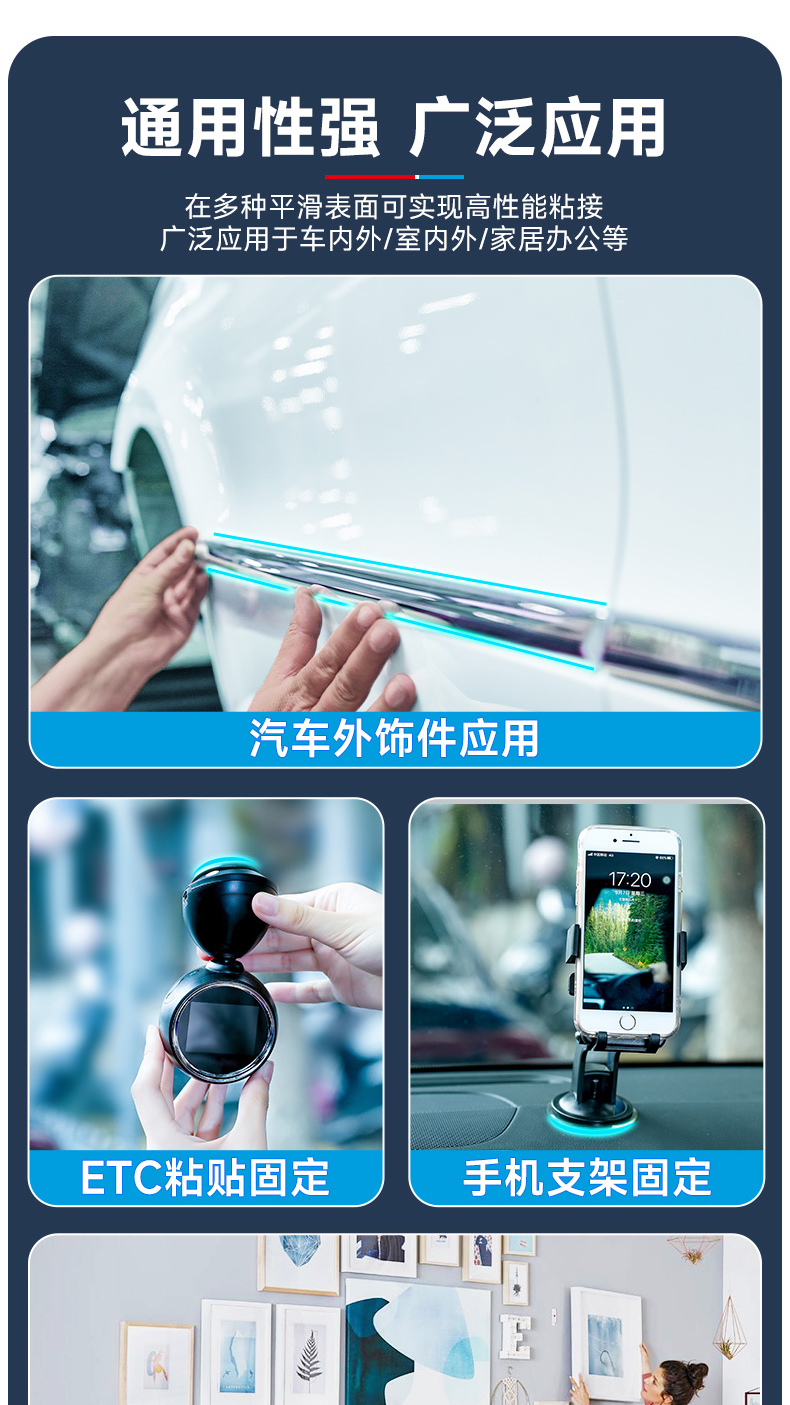 免底涂设计:无需助粘剂即可在各类车漆和塑料表面使用,简化操作流程,更健康环保。