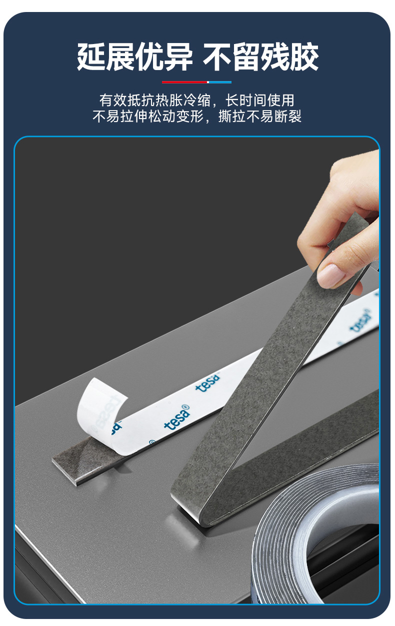 延展优异:有效抵抗热胀冷缩,长时间使用不易拉伸松动变形,撕拉不易断裂,不留残胶。