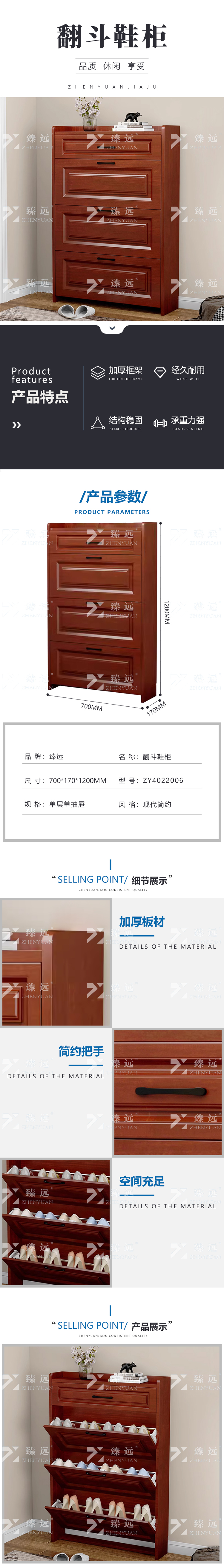 臻远ZY4022006木质翻斗鞋柜入户门口窄边鞋柜单层单抽屉