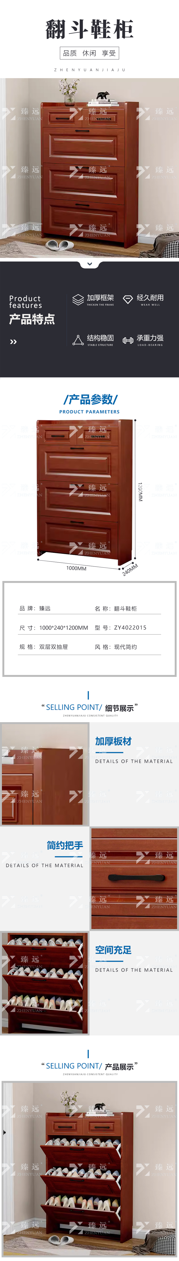 臻远ZY4022015木质翻斗鞋柜入户门口窄边鞋柜双层双抽屉