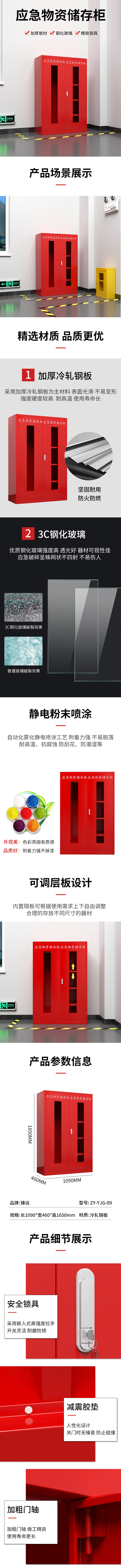 臻远 ZY-YJG-09 应急柜物资柜消防柜救灾事故器材柜救援装备柜 红色 1090*460*1650