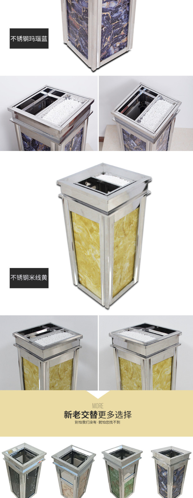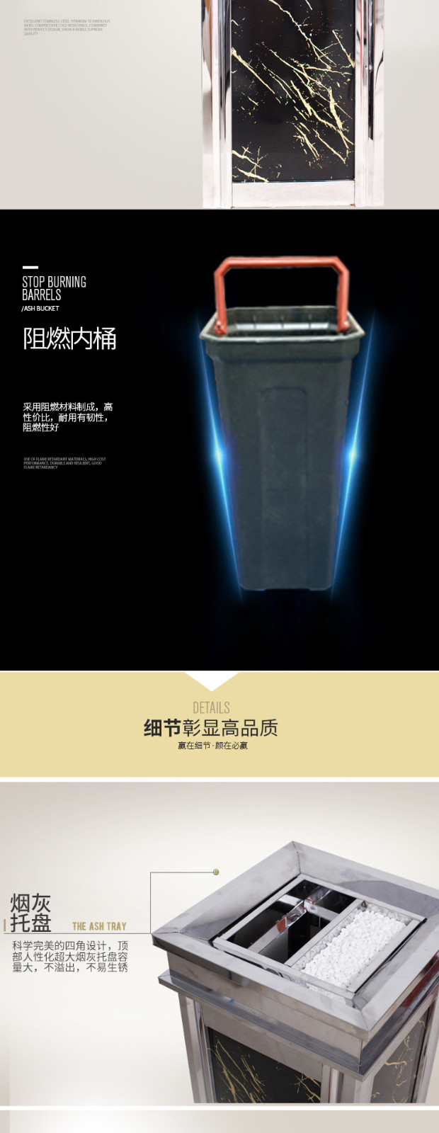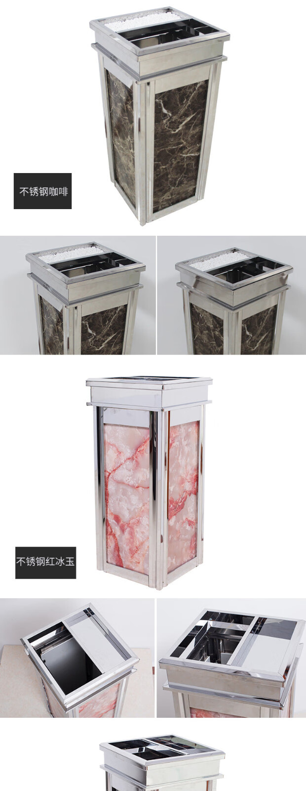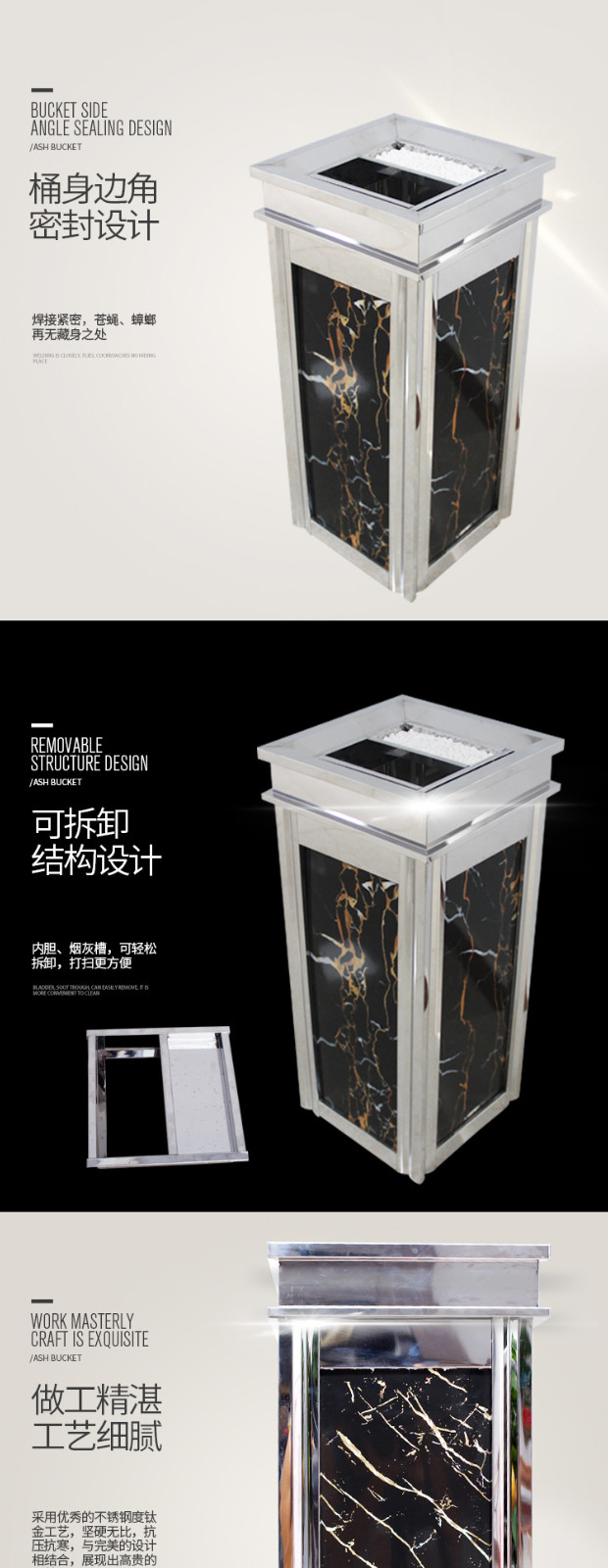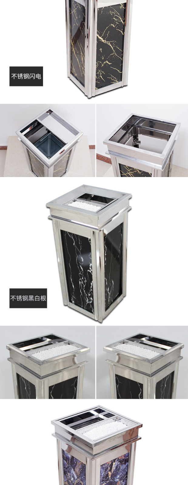 庄太太 ZTTDLS-001 630*280*280mm 酒店分类大堂垃圾桶 不锈钢大号 黑白银 仿大理石垃圾桶宾馆KTV立式烟灰桶