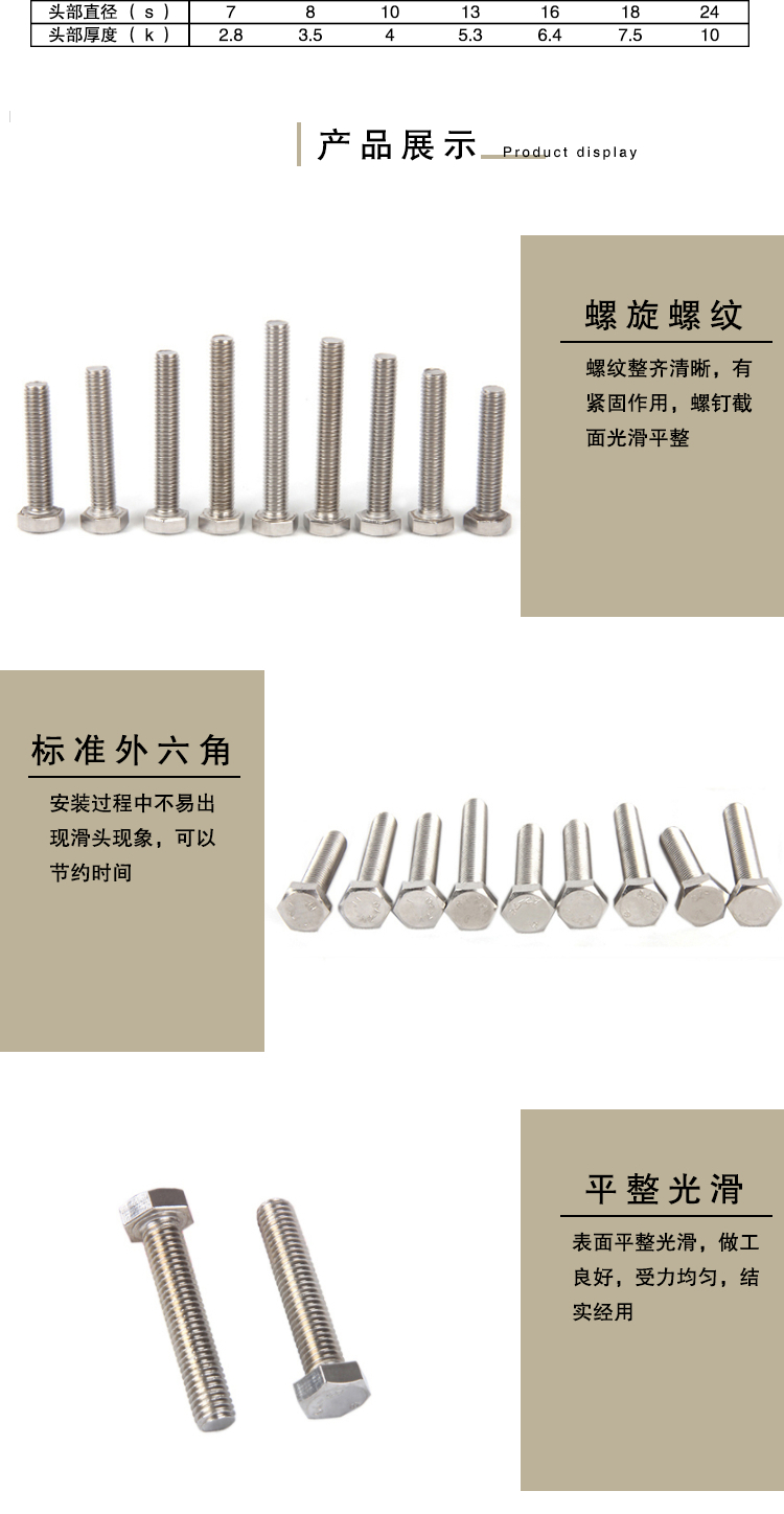 安赛瑞 国标不锈钢外六角螺丝 304不锈钢外六角螺栓 全螺纹机械螺丝钉 (10枚装)M16*70mm 21788