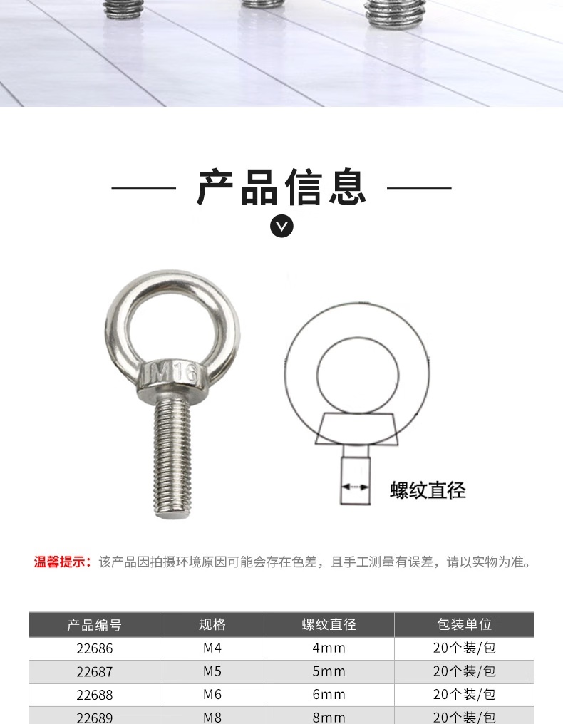 提供多种规格选择(M3至M16),满足不同场景的使用需求