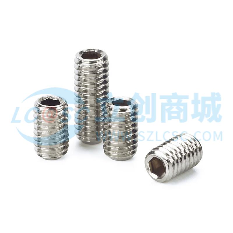 内六角凹端设计,无头结构(止付螺丝/机米螺丝),便于精准嵌入工件,实现紧密固定
