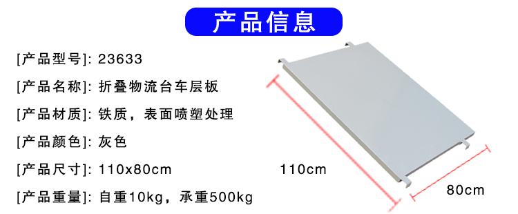 2 适配性强:尺寸为110x80cm,适配安赛瑞折叠物流台车(型号23631/23632),可作为周转笼车的额外层板使用