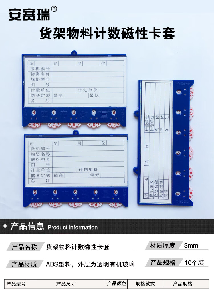 安赛瑞 货架物料计数磁性卡套 仓库卡磁性标签 货架库存磁扣计数标牌(10个装)75×100mm 4位计数 白色 23740