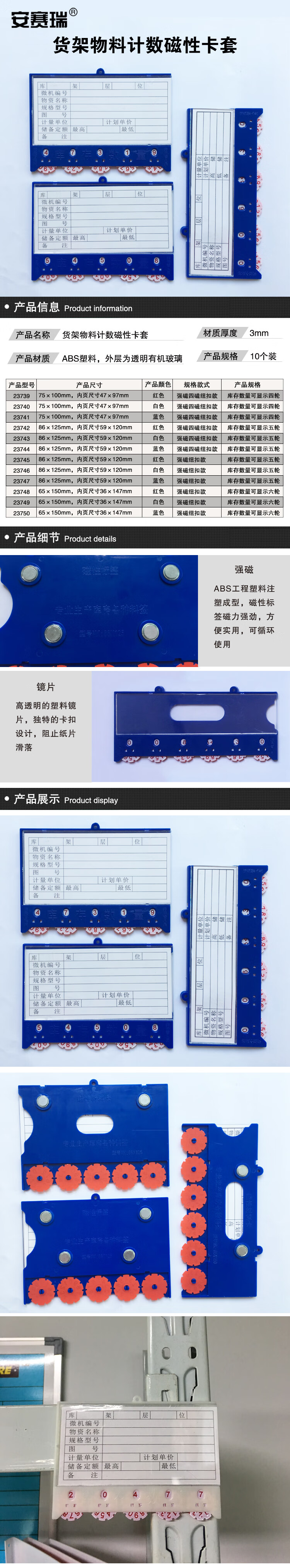 清晰计数:配备6位数字计数轮,库存数量显示直观,转动顺畅,便于快速记录物料数量变化