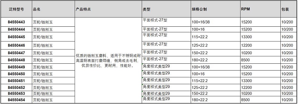 Forant(泛特) 84550444 页轮采用优质锆刚玉磨料制成,具有出色的耐磨性和高切削效率,适用于不锈钢、耐高温钢等难加工材料的表面处理。