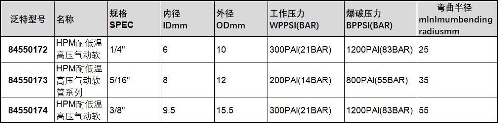 Forant(泛特) 84550172 HPM耐低温高压气动软管系列 规格:1/4〞