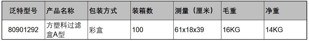 Forant(泛特) 80901292 方塑料过滤盒A型 净重:14KG